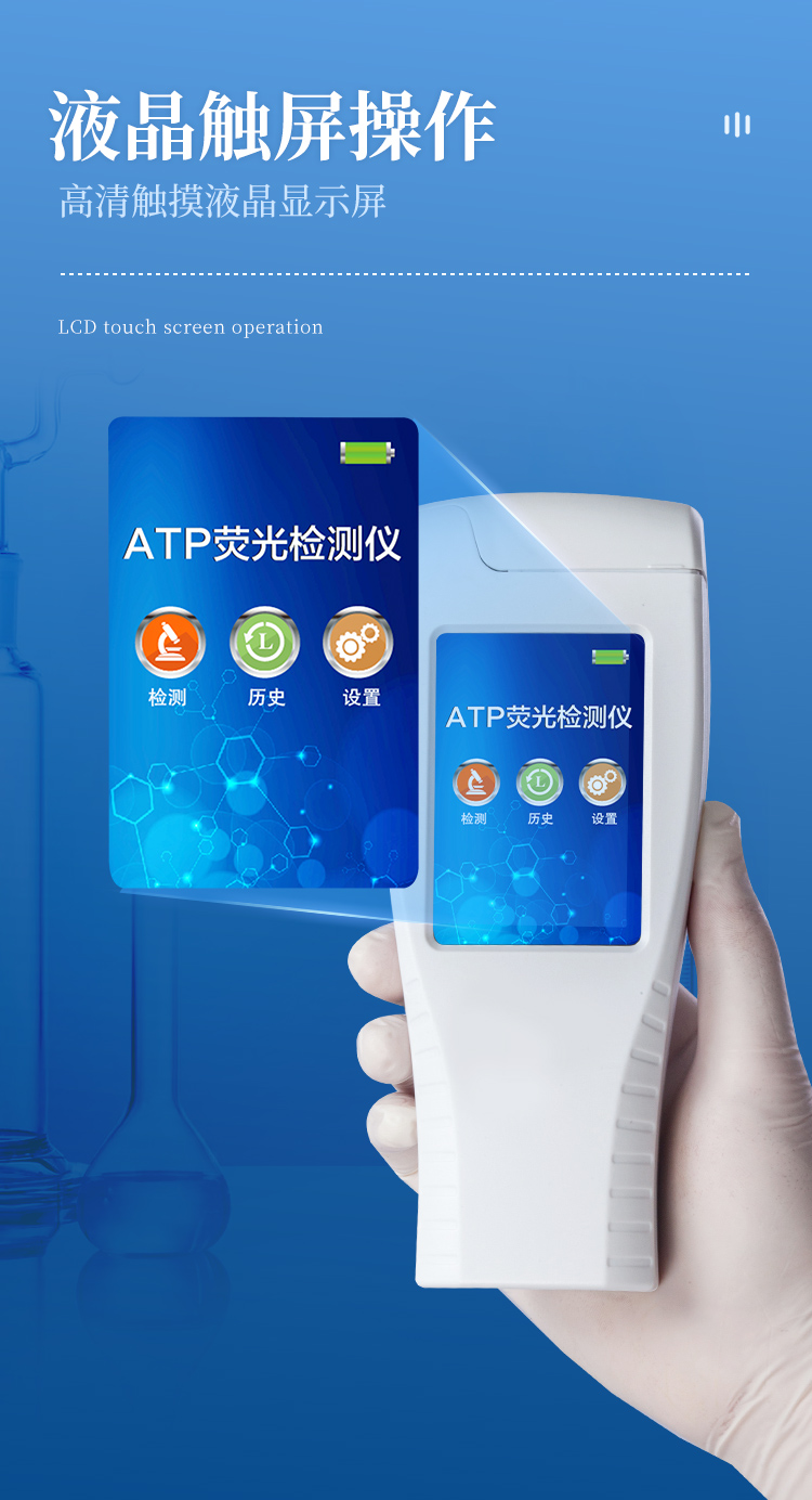 ATP荧光检测仪该设备为全新升级产品,安卓智能操作系统。操作采用生物化学反应方法检测ATP含量,ATP荧光检测仪基于萤火虫发光原理,利用“荧光素酶—荧光素体系”快速检测三磷酸腺苷(ATP)。ATP拭子含有可以裂解细胞膜的试剂,能将细胞内ATP释放出来,与试剂中含有的特异性酶发生反应,产生光,再用荧光照度计检测发光值,微生物的数量与发光值成正比,由于所有生物活细胞中含有恒量的ATP,所以ATP含量可以清晰地表明样品中微生物与其他生物残余的多少,用于判断卫生状况。