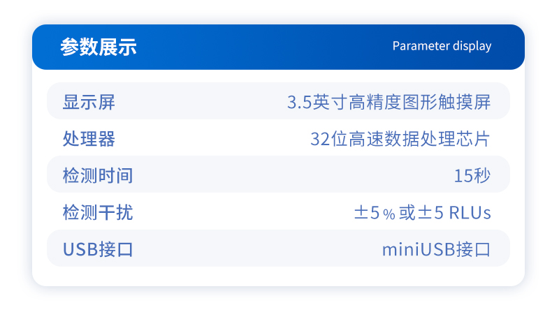 ATP荧光快速检测仪主要参数: